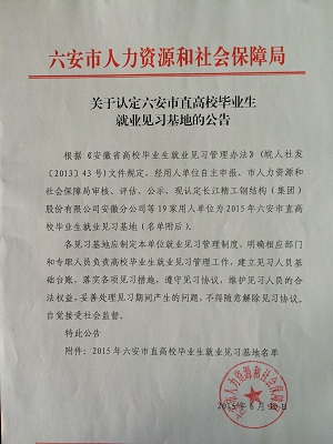 根據(jù)《安徽省高校畢業(yè)生就業(yè)見習(xí)管理辦法》(皖人社發(fā)〔2013〕43號)文件規(guī)定,近日,市人社局公布了新認(rèn)定的2015年市直高校畢業(yè)生就業(yè)見習(xí)基地及其提供的160個(gè)就業(yè)見習(xí)崗位,計(jì)劃接收就業(yè)見習(xí)人員300名。畢業(yè)兩年內(nèi)的未就業(yè)高校畢業(yè)生,可以挑選適合自己的崗位,報(bào)名參加帶薪就業(yè)見習(xí)。安徽正陽機(jī)械科技有限公司獲此殊榮。